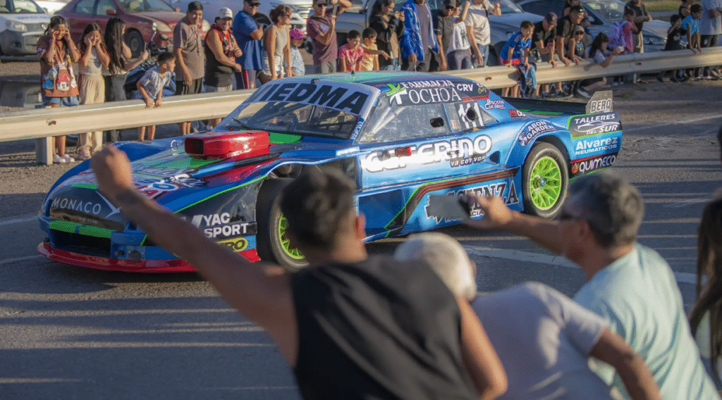 Los pilotos locales Joaquín y Benjamín Ochoa realizaron una exhibición sobre la Ruta 3 ante cientos de fanáticos que comenzaron a vivir la fiesta del automovilismo.