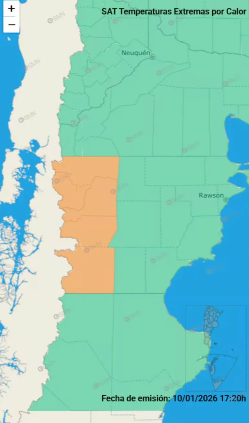 Para esta zona, el SMN indica que el área será afectada por vientos fuertes del sector oeste rotando al sector sur, con velocidades entre 40 y 60 km/h y ráfagas que pueden alcanzar los 90 km/h, pudiendo ser superadas de manera local.