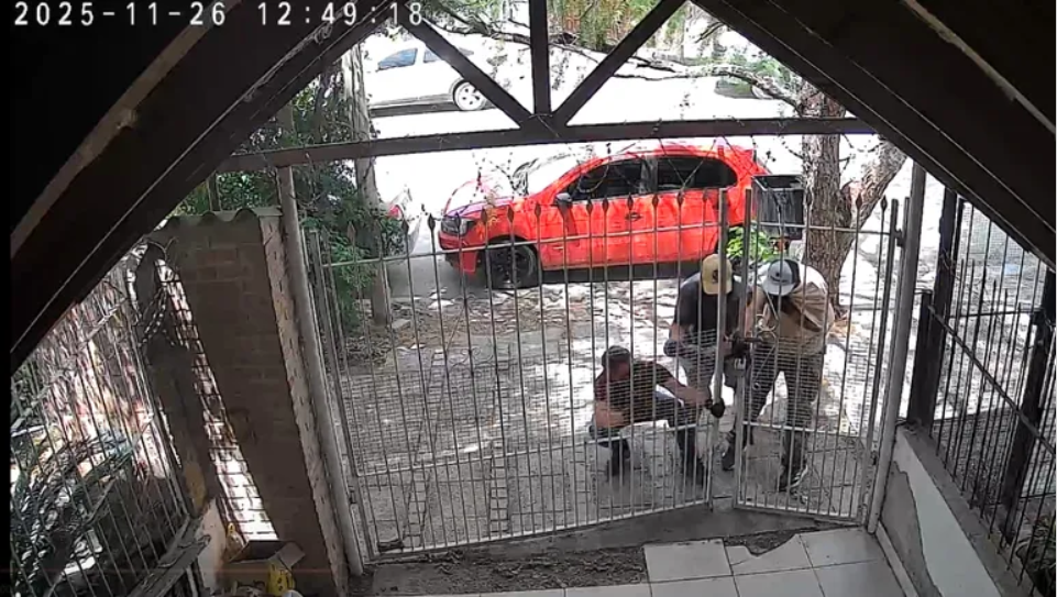 En uno de los videos difundidos por las víctimas se observa cómo el auto rojo se detiene lentamente frente a una casa elegida como objetivo. De inmediato, descienden dos hombres encapuchados: uno del asiento del acompañante y otro de la puerta trasera. Con el rostro cubierto y solo los ojos a la vista, corren hacia la reja del frente e intentan forzarla, pero el candado dificulta su avance. Los movimientos bruscos disparan la alarma de la vivienda, aunque esto no los detiene.
