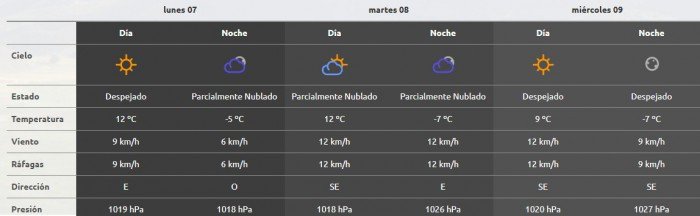 A partir de la madrugada del martes, se espera el regreso del aire polar con heladas persistentes. En Neuquén capital, las temperaturas mínimas descenderán a -4°C el martes y -3°C el miércoles, con máximas que no superarán los 13°C o 15°C.