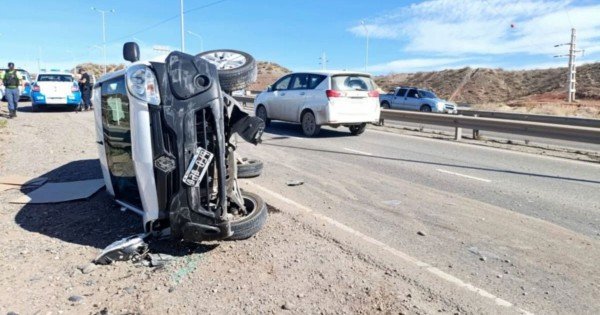 Por causas que se investigan, perdieron el control e impactaron contra la camioneta Renault Kangoo donde iban dos adultos mayores. El impacto hizo que este último vehículo terminara volcando.