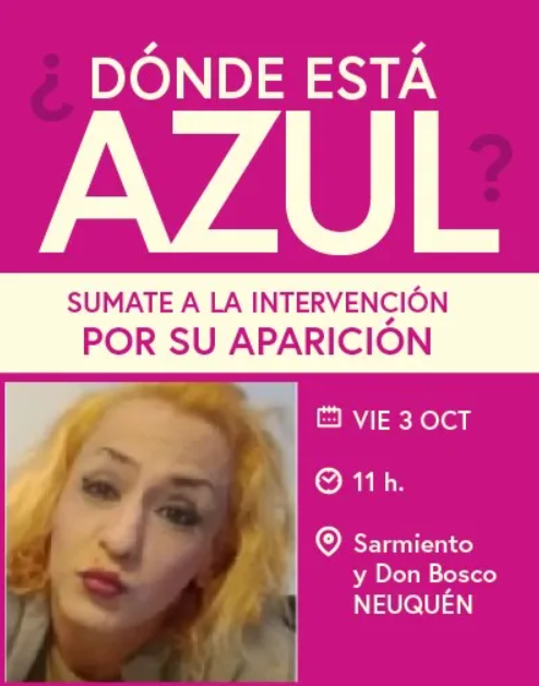 Azul es una persona responsable, no desaparece porque sí. Siempre iba a trabajar y valoraba mucho su espacio laboral. Cuando vimos que no contestaba el teléfono, supimos que algo había pasado”, contó Juliana, amiga de la mujer.