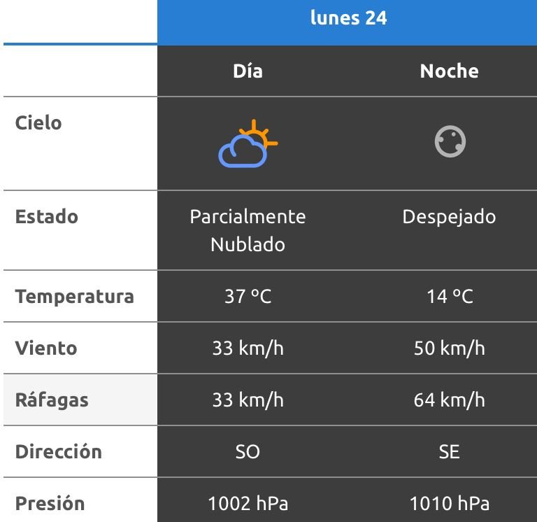 De acuerdo al parte del Servicio Meteorológico Nacional, el clima se presentaría sin lluvias, y los vientos del sur correrán a una velocidad de entre 23 y 31 kilómetros por hora. La humedad sería del 17 por ciento, y la visibilidad sería buena.