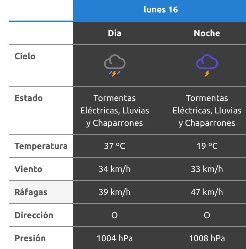 El parte del servicio meteorológico prevé que para después del mediodía el cielo estará con tormentas aisladas y los vientos del sector norte tendrán velocidades estimadas de entre 32 y 41 km/h. La temperatura pronosticada sería de 36 grados.