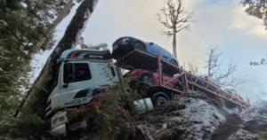 En plena nevada: un camión que transportaba autos perdió el control sobre la Ruta 231 septiembre 3, 2025