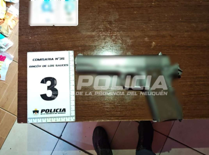 En otra casa situada en la calle San Juan, los efectivos encontraron dos teléfonos celulares, réplicas de un arma 9 mm y una tumbera en proceso de fabricación, elementos que también fueron incorporados a la investigación.
