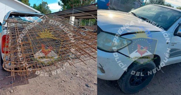 En ese contexto, mientras realizaban las actuaciones de rigor, vieron a un grupo de personas a lo lejos, dentro del predio de una empresa, cargando mallas de hierro en la caja de una camioneta Toyota Hilux.