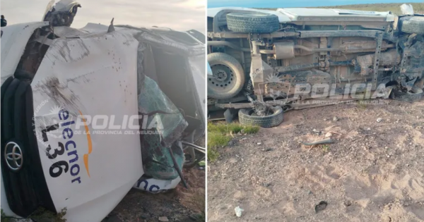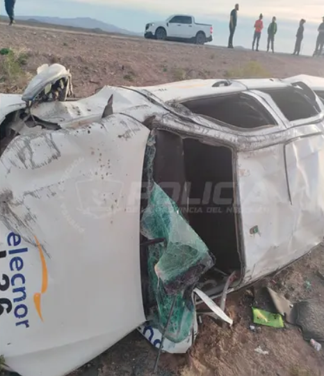 Los operarios viajaban en una camioneta Hilux de la empresa Elecnor, con cuatro ocupantes de entre 32 y 52 años. Según la policía, el conductor perdió el control y el vehículo dio varios tumbos antes de quedar recostado al costado de la ruta.