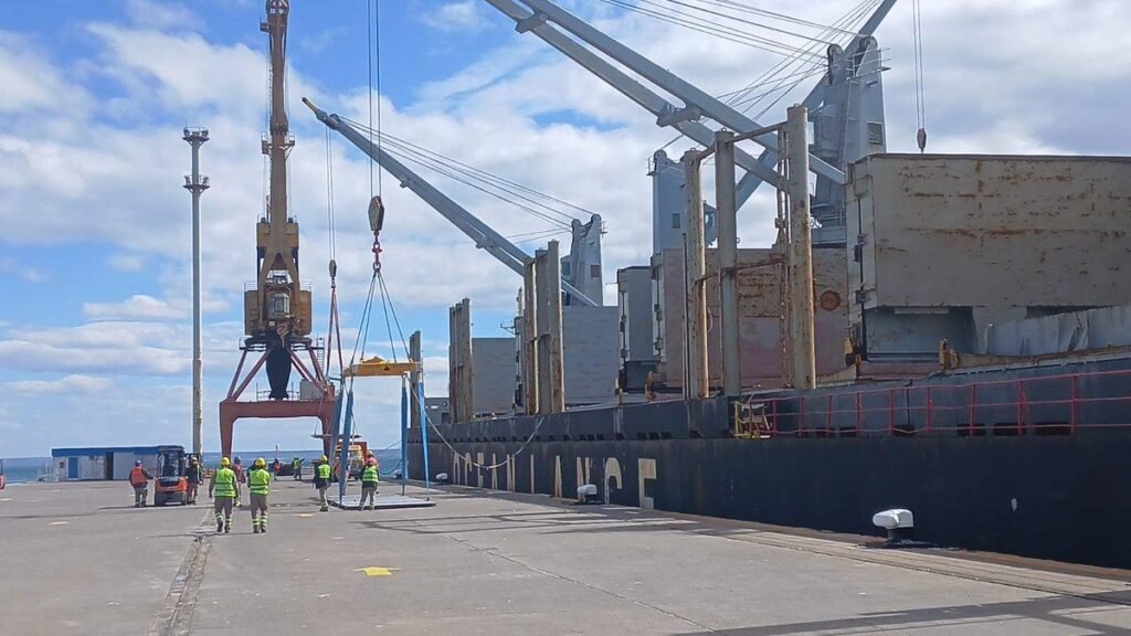 La descarga comenzó este lunes a las 7 de la mañana y se extenderá durante cinco días, con la participación de 60 trabajadores por turno, en una maniobra logística de gran magnitud para la Provincia.