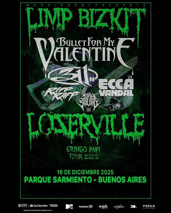 Limp Bizkit vuelve al país como parte de su LOSERVILLE TOUR, acompañado por bandas como Bullet For My Valentine, 311, Ecca Vandal, Slay Squad y Riff Raff. El proyecto liderado por Fred Durst ya fue un éxito en Estados Unidos y Europa.