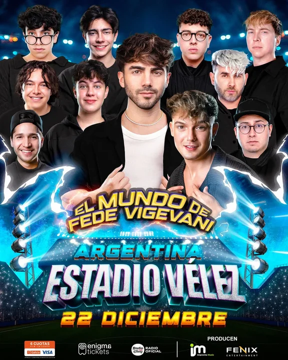 Fede Vigevani dará su show en el estadio Vélez el 22 de diciembre.