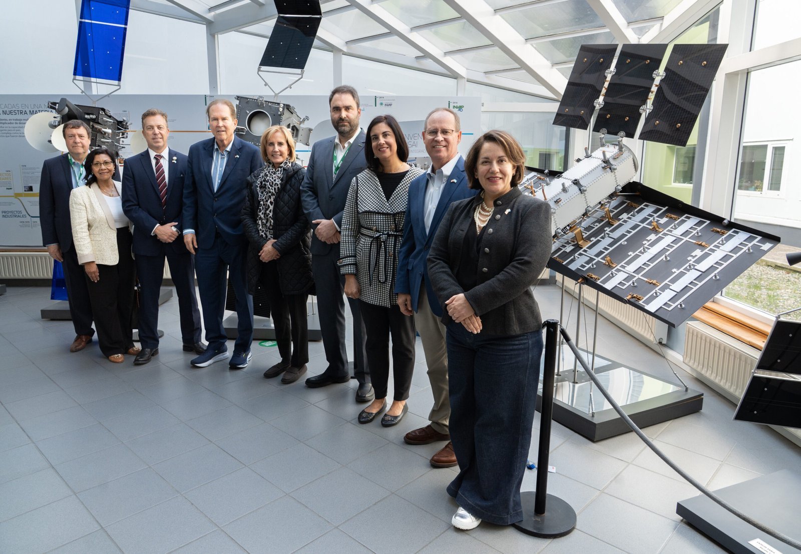 La delegación recorrió las plantas y laboratorios de la empresa, donde se presentaron los principales proyectos de innovación en curso, así como las líneas de trabajo vinculadas a energía, satélites, radares y sistemas de defensa.
