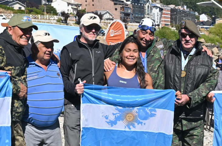 Mayte destacó la relevancia del evento: “Es la primera vez que cruzo el Nahuel Huapi, en homenaje a los veteranos y también a Enriqueta Duarte, la primera mujer en atravesar el lago en 1963. Con gente de todo el país, se hace muchísimo más especial”.