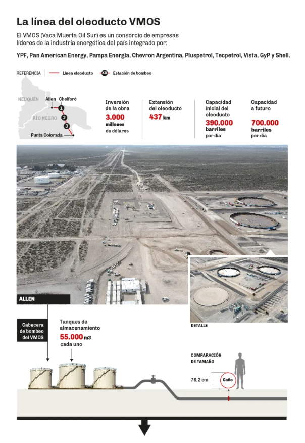 El oleoducto Vaca Muerta Oil Sur (VMOS) se consolidó como un motor clave de empleo y desarrollo económico en Río Negro. Con 2.550 trabajadores directos, entre ellos 130 mujeres, y 300 operarios dedicados a la construcción portuaria en Sierra Grande, el proyecto refleja el impacto positivo del desarrollo energético sobre la región.