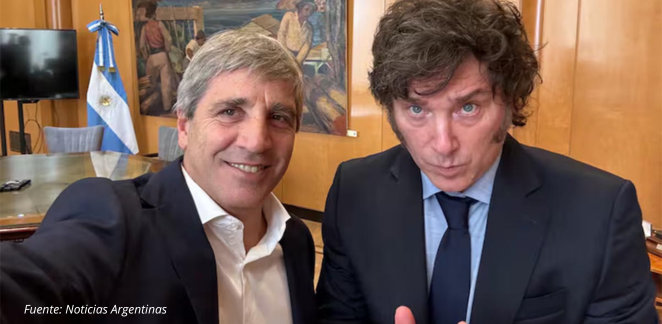 Luis Caputo (Ministro de Economía) y el Presidente de la Nación, Javier Milei.