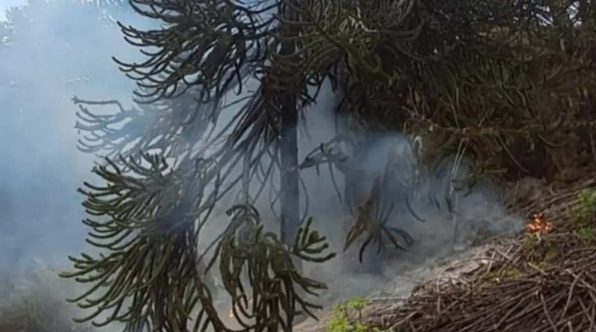 Por su parte, el foco de Chinchillas se encuentra contenido, y un guardaparque junto a cuatro combatientes del ICE Lanín trabajan con herramientas manuales para controlar las llamas que afectan principalmente a araucarias y caña colihue.