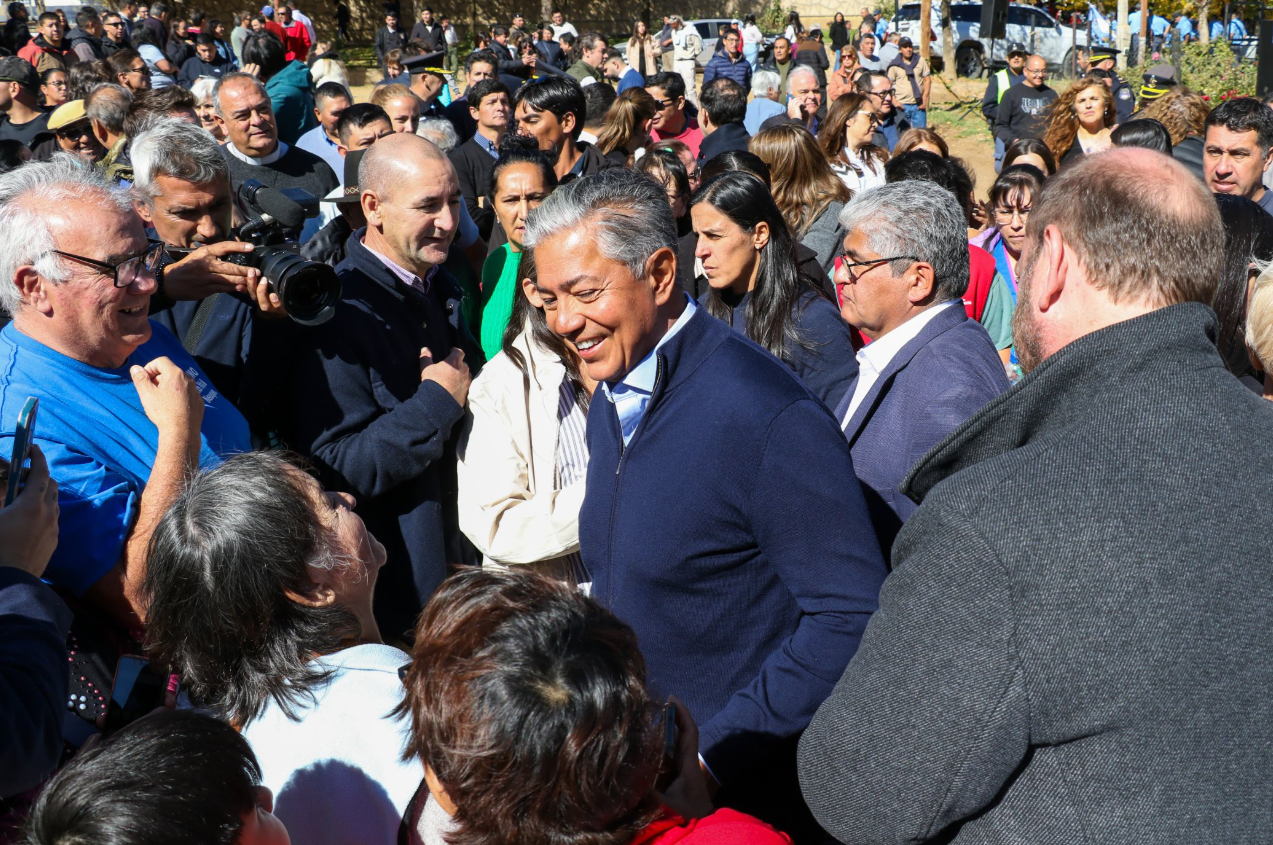 Acompañado por el intendente Luis Sepúlveda, el mandatario inauguró una perforación de agua y entregó una vivienda. Además, recorrió el nuevo gimnasio en construcción —de más de 1.000 metros cuadrados y una inversión superior a los 3.700 millones de pesos— y el Sagrado Corazón de Jesús, uno de los puntos que integrará el futuro “Camino de la Fe”.