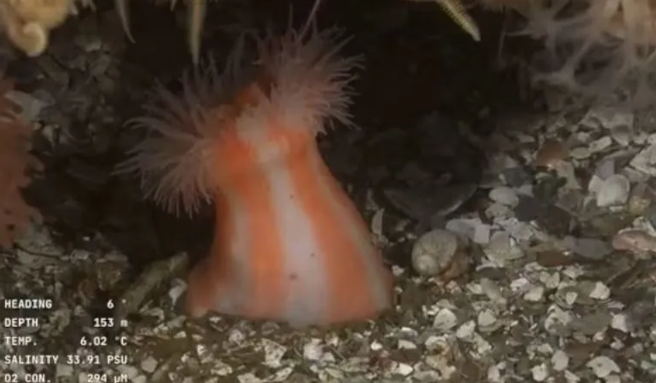 • Una anémona de rayas blancas y rojas, distinta a las habituales, que fue bautizada como “anémona en pijama”. Algunas especies alcanzan entre 1,25 centímetros y 2 metros de diámetro.