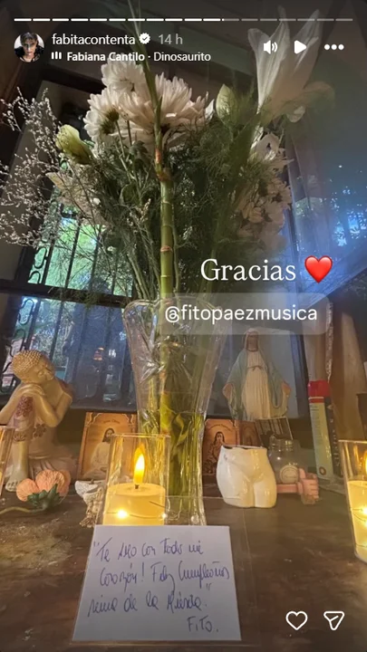 Además del festejo con amigos, Cantilo recibió un saludo especial del músico Fito Páez, con quien mantuvo una relación durante su juventud. El artista le envió un ramo de flores blancas acompañado por una dedicatoria: “Te amo con todo mi corazón. Feliz cumpleaños”.