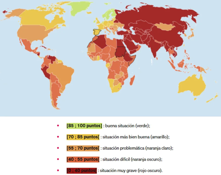 De acuerdo con el relevamiento, más de la mitad de los países, el 52,2%, se encuentran en una situación “difícil” o “muy grave”, una cifra que contrasta fuertemente con el 13,7% registrado en 2002.