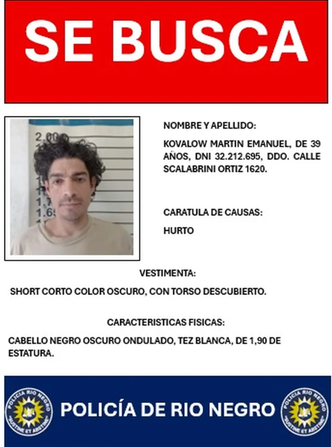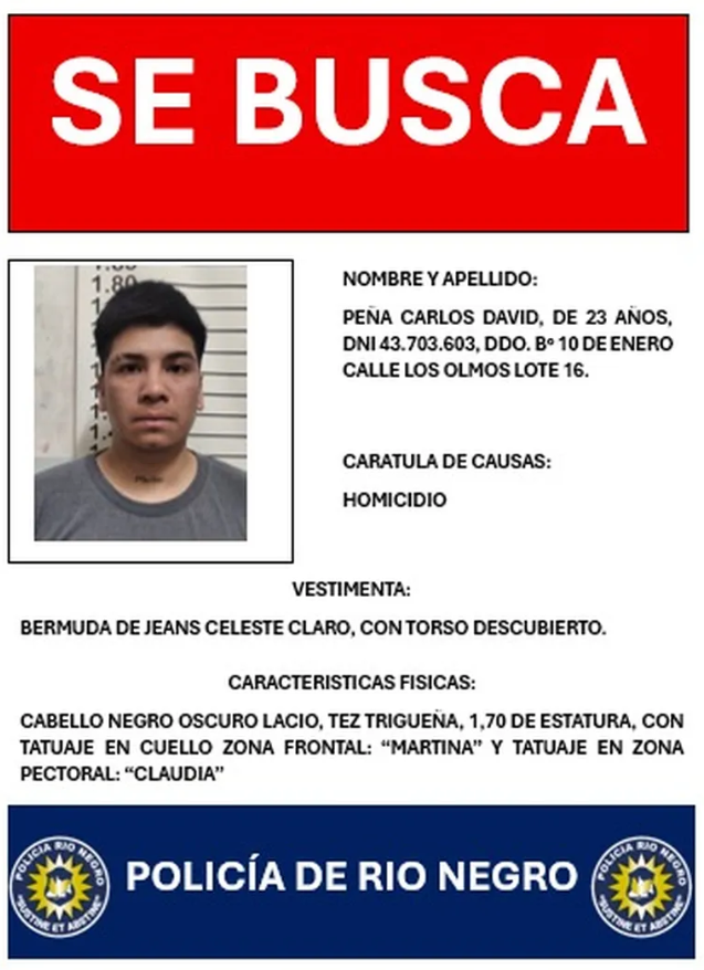 La Policía de Río Negro difundió la identidad y características físicas de ambos hombres para facilitar su localización.