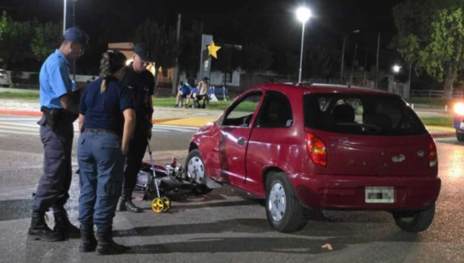 El choque se produjo en inmediaciones de la Plaza del Bicentenario, en la intersección de Expedicionarios del Desierto y la avenida 11 de Septiembre. Según los primeros informes de Centenario Digital, el automóvil intentaba retomar la marcha después de estar estacionado, momento en el que la motocicleta golpeó de lleno uno de sus laterales, generando importantes daños materiales.