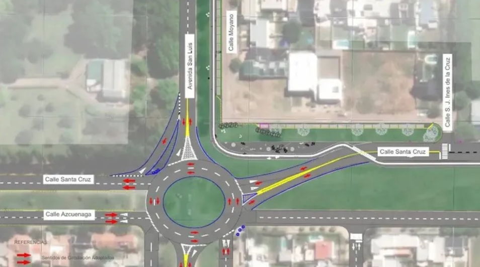 Desde la Secretaría de Obras Públicas explicaron que, para poner en funcionamiento la rotonda, se implementaron cambios en el sentido de circulación de las calles Santa Cruz y Azcuénaga. Por ese motivo, se solicitó a los conductores circular con precaución y respetar la señalización vial.