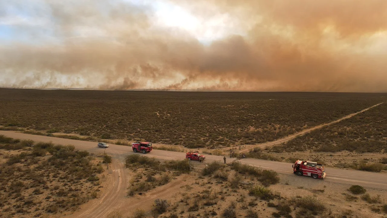 A las dificultades del terreno se sumaron el viento y las temperaturas superiores a los 30 °C, lo que aceleró la velocidad del fuego. “Están descontrolados. Uno avanza con mucha intensidad y el otro quema más lento, pero ambos siguen activos”, describió Cristian Otero, jefe del cuartel de Bomberos de Trelew.