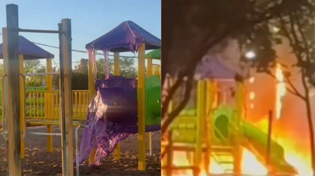 Indignación en Ingeniero Huergo: incendiaron los juegos de la Plaza de la Juventud