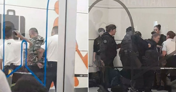 En ese contexto, intentó autolesionarse, por lo que habría sido trasladado de urgencia al hospital local recibir atención médica. Muchos de los pasajeros que esperaban para abordar sus vuelos filmaron los arrestos. Una de esas imágenes encabeza esta nota.