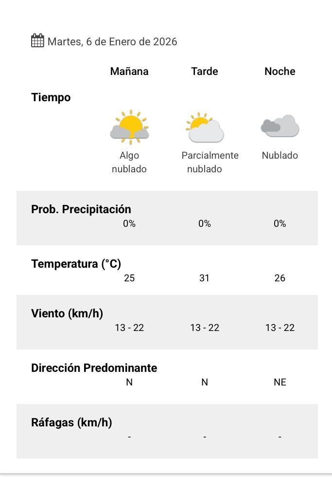 El Servicio Meteorológico Nacional anticipa que este 6 de enero, la temperatura rondará entre los 21 y 31 grados.