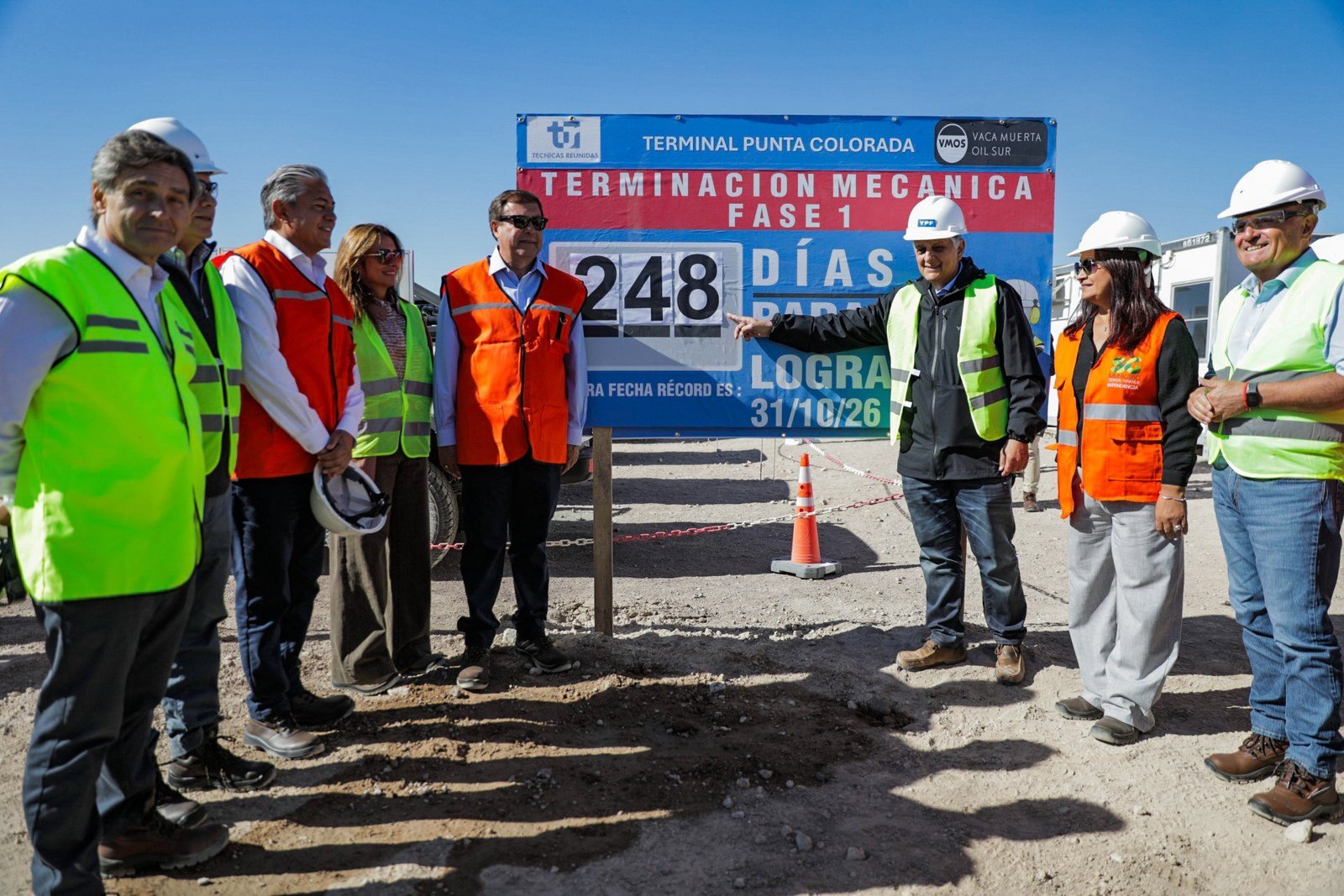 El gobernador Alberto Weretilneck recorrió los trabajos e inauguró las nuevas oficinas de la empresa en la ciudad, acompañado por su par neuquino Rolando Figueroa, el presidente de YPF, Horacio Marín, y el CEO de VMOS, Gustavo Chaab. También participaron la intendenta Roxana Fernández y el vicegobernador Pedro Pesatti, entre otras autoridades y representantes sindicales.
