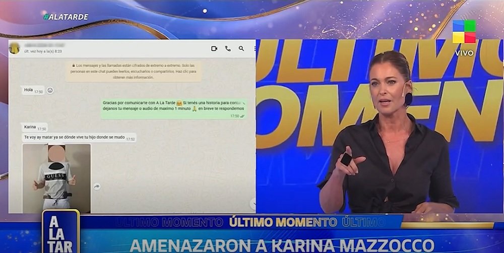Durante el programa del martes, Mazzocco compartió con la audiencia los mensajes intimidatorios que recibió a través del número de WhatsApp de la producción, el lugar por el que comúnmente el público envía historias personales. Los mensajes, exhibidos en pantalla, contenían amenazas explícitas: “Karina, te voy a matar. Ya sé dónde vive tu hijo, dónde se mudó”.