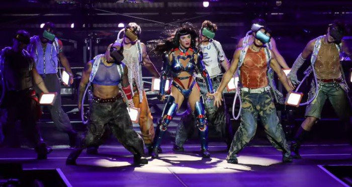 La escenografía, con plataformas móviles, flores inflables y efectos futuristas, acompañó cada bloque del espectáculo, mientras que Perry mostró no solo su potencia vocal, sino también complicidad con los ocho bailarines que la escoltaron en todo momento.