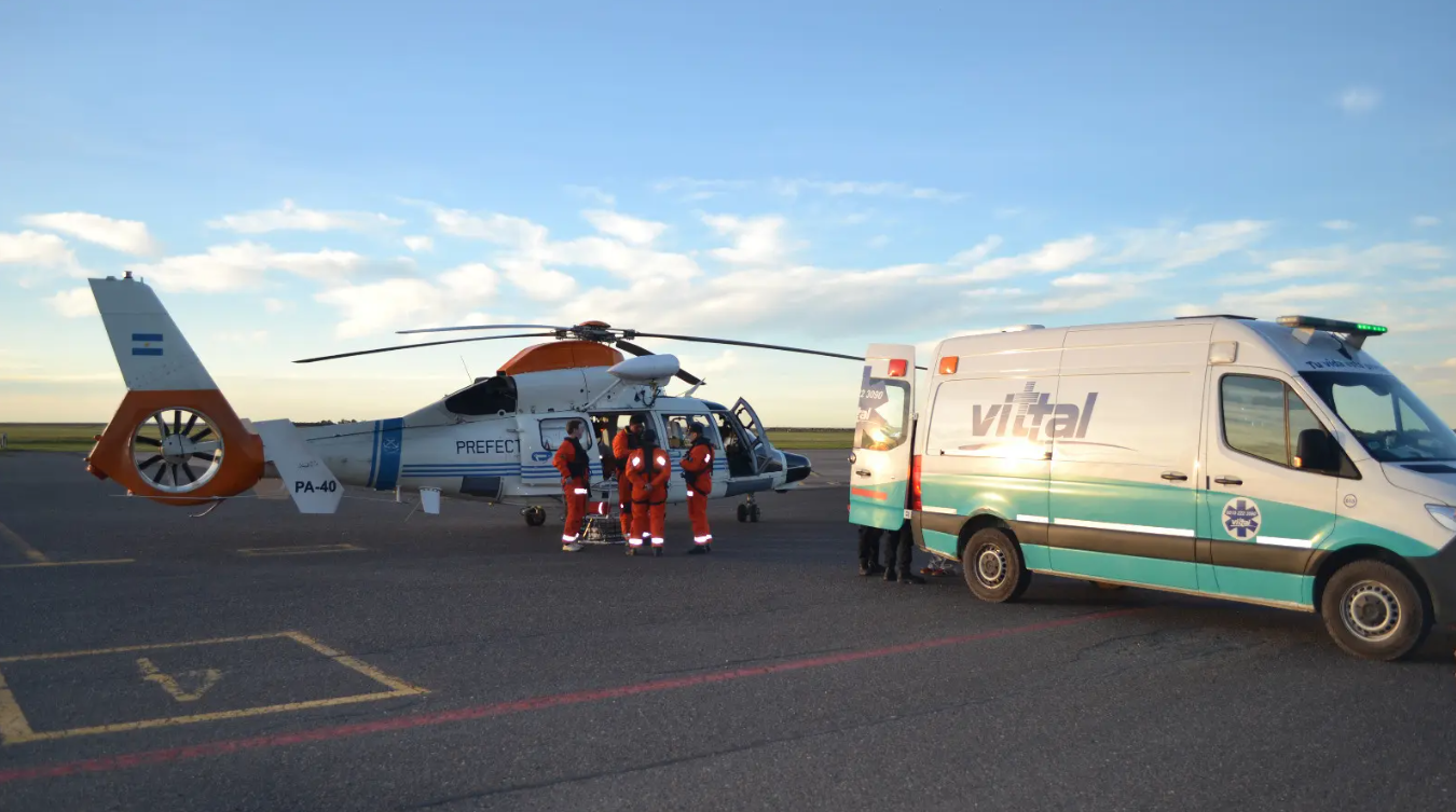 Horas más tarde, con las primeras luces del amanecer, el helicóptero salió nuevamente desde Viedma para interceptar un buque pesquero. En esta ocasión, un tripulante con problemas de salud fue evacuado y trasladado a la capital rionegrina, donde lo esperaba una ambulancia y personal médico local.