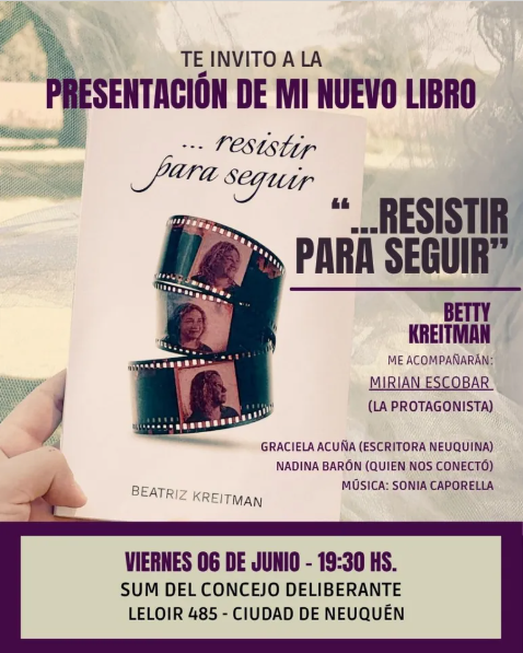 El viernes 6 a las 19:30, en el SUM del Concejo Deliberante (Leloir 485), se presentará el libro Resistir para seguir, de la exdiputada Betty Kreitman.