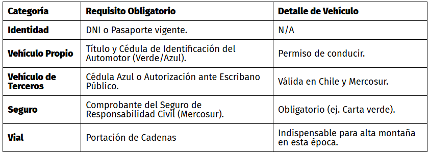 Antes de emprender el viaje hacia Chile desde el paso fronterizo Pino Hachado, recordá verificar la siguiente documentación obligatoria: