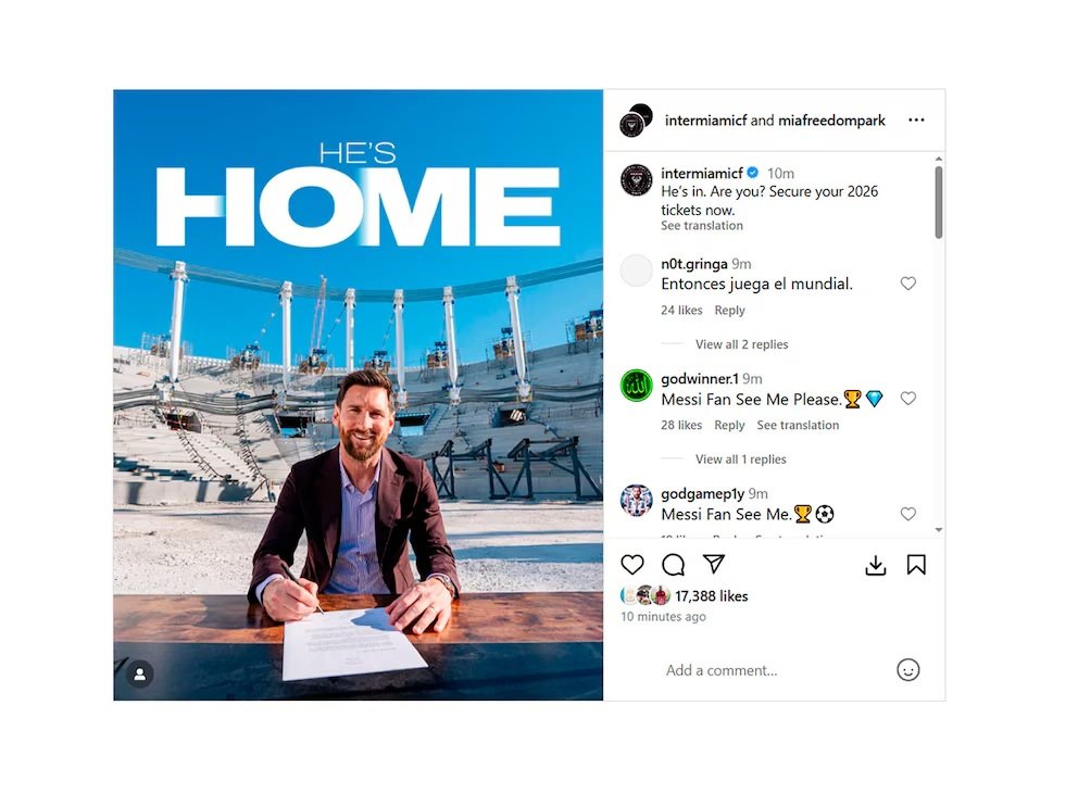 La filmación que difundió el combinado rosa en sus redes sociales bajo el título “está en casa” mostró al futbolista argentino de 38 años vestido con un elegante traje marrón mientras firmaba un contrato en medio de la construcción del flamante estadio que reemplazará al actual Chase Stadium. “Freedom 10 dream”, es la placa que aparece en el final. En Instagram, la cuenta oficial de la MLS en español firmó entre los comentarios: “Leo se queda en nuestra liga”.