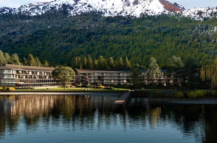 La construcción se lleva adelante en el predio donde antiguamente funcionó el histórico hotel “El Retorno”, un espacio emblemático rodeado por bosques nativos y frente a uno de los espejos de agua más reconocidos de la región. El plan contempla la creación de un complejo que combinará hospedaje tradicional y alojamiento residencial: contará con 99 habitaciones y 48 residencias privadas, diseñadas con vistas privilegiadas hacia el lago y la cordillera del Parque Nacional Nahuel Huapi.