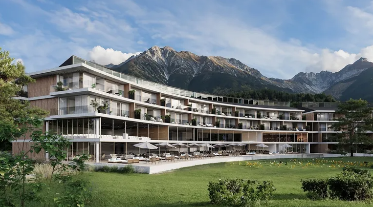 El complejo combinará 99 habitaciones y 48 residencias privadas con vistas al Parque Nacional Nahuel Huapi. Su apertura está prevista para 2028.