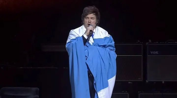 El mandatario abrió la noche al sonido del cuerno de carnero e interpretó versiones de temas de Charly García, Sandro, La Mississippi, Ataque 77 y Nino Bravo junto a “La Banda Presidencial”, integrada por dirigentes y colaboradores cercanos. En una de las canciones modificó la letra para cantar “Soy capitalista”, lo que desató la ovación del público.