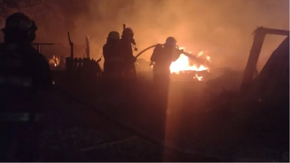 Casi en simultáneo, a las 03:20, una dotación se desplazó en el móvil 11 para intervenir en un incendio estructural que afectó a una construcción tipo pabellón en la misma localidad. Al arribar, se constató que el inmueble presentaba daños totales. Según se informó, el material de la edificación favoreció la rápida propagación del fuego, lo que dificultó las tareas iniciales de control.