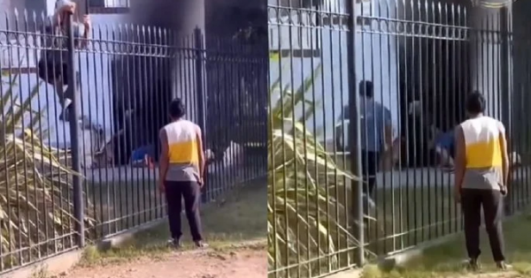 También, un grupo de personas que trabajan limpiando vidrios en la esquina de Mariano Moreno y Ceferino Namuncurá socorrieron al hombre, saltaron la reja del monumento a las lobas y rompieron la puerta para poder sacarlo.