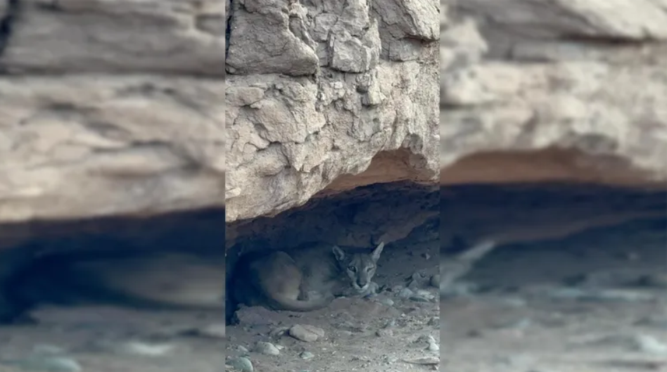 El episodio ocurrió el jueves por la tarde, cuando un vecino que se encontraba disfrutando de la jornada junto a familiares advirtió movimientos inusuales cerca de una bajada de agua ubicada al pie de un acantilado. Al acercarse con cautela, confirmó que se trataba de un felino de gran porte, que permanecía inmóvil y sin mostrar conductas agresivas.