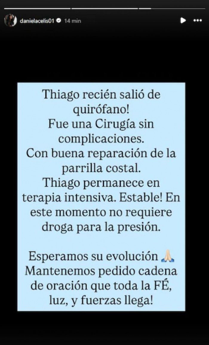 En paralelo, Daniela Celis, expareja de Medina y madre de sus hijas, compartió en redes sociales que “la cirugía fue sin complicaciones” y agradeció las muestras de apoyo. “Seguimos con la cadena de oración, toda la fe, luz y fuerza llega”, expresó. Su hermana Camila Deniz también replicó el mensaje para llevar tranquilidad.