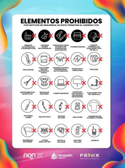Desde que comenzó la Fiesta de la Confluencia este jueves 5 de febrero hay dudas de qué elementos pueden ingresarse y cuáles no. Aunque previamente se había detallado el listado, los asistentes han manifestado tener problemas en los ingresos con sus pertenencias.