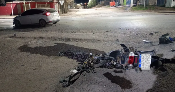 Las imágenes del siniestro muestran la violencia del choque: el parabrisas del lado del conductor del Focus quedó destruido, con severos daños también en el frente izquierdo del vehículo. La moto, por su parte, terminó completamente desarmada en la calle, rodeada de cables, partes metálicas, una mochila camuflada y un casco.