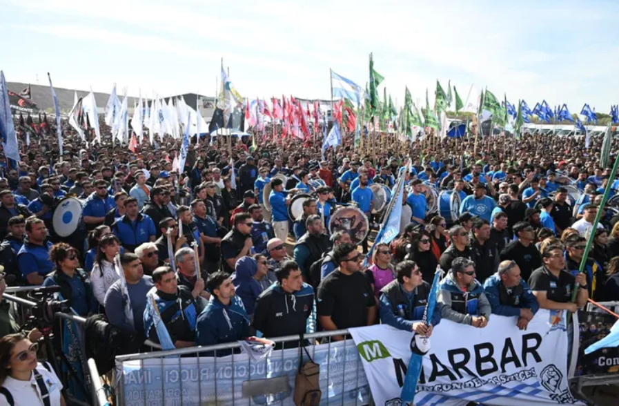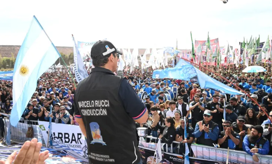 Más de 20 mil trabajadores participaron de la asamblea en la que el secretario general del Sindicato de Petroleros Privados de Río Negro, Neuquén y La Pampa, Marcelo Rucci, confirmó dos acuerdos clave: un incremento del 5% en el adicional por zona desfavorable y la implementación de un seguro de vida y siniestros laborales con cobertura de cinco años.