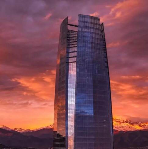 La torre forma parte del complejo Costanera Center y fue diseñada por el reconocido arquitecto argentino César Pelli. Su estructura vidriada refleja el cielo y la cordillera, generando un juego visual que cambia con la luz del día.