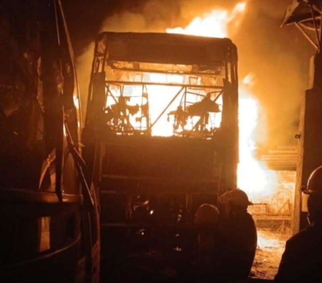 Se incendió el colectivo del Club Rivadavia en Cutral Co y apuntan a un hecho intencional